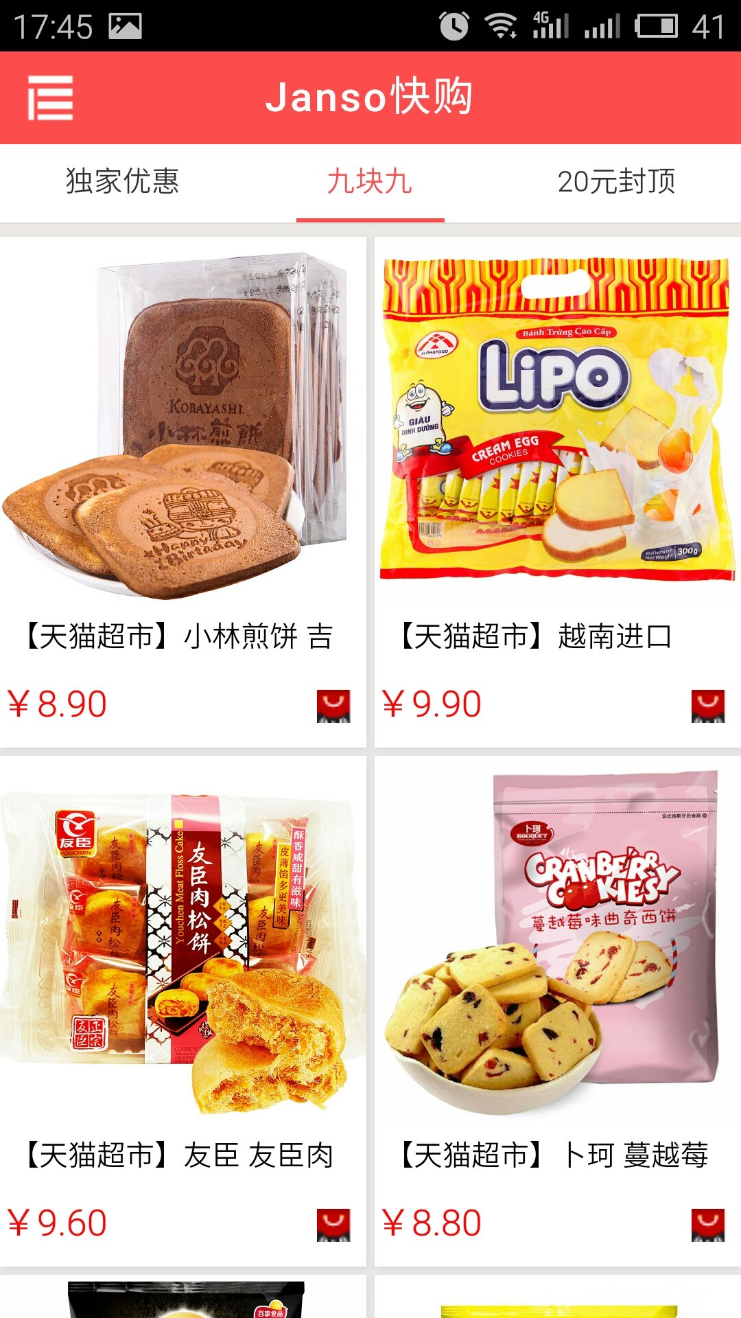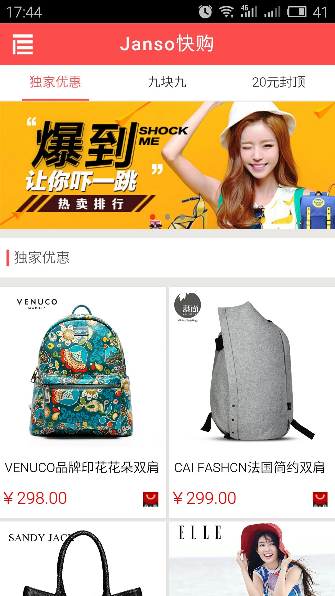 Janso快购专注移动平台的推荐购物,主打个性化和精准化的商品推荐。功能包括热门的商店推荐,根据用户的个人喜好寻找商品,每天精选潮流热卖商品,帮你一站式购买淘宝、天猫、京东等商城的商品,随时随地发现又好又便宜的宝贝。为你推荐流行潮品。支持支付宝在线购买,有良好的用户体验。