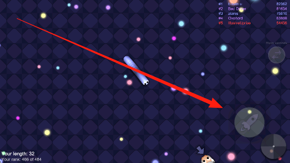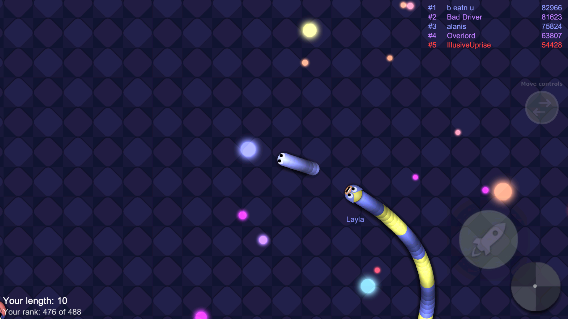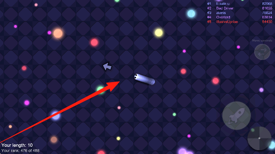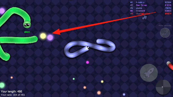 2、增长体积斗对手:优先拾取散落在场景中相互战斗所留下的食物,待实力提升后,主动寻找并吃掉体积较小的蛇以淘汰对手,同时警惕体积更大的对手,避免被吞噬。