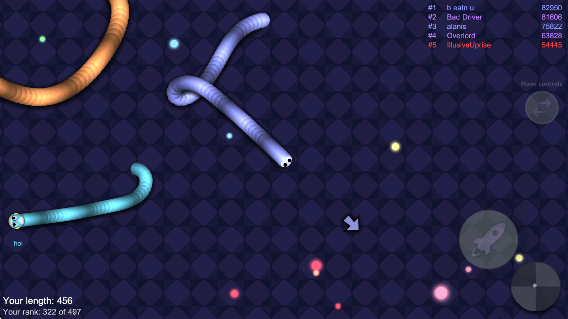2、体积成长策略性强:拾取食物增长体积是提升实力的关键,体积大小直接影响对抗能力,拾取食物与躲避大体积对手间寻找平衡,策略性地规划移动路线,增强竞技的深度。