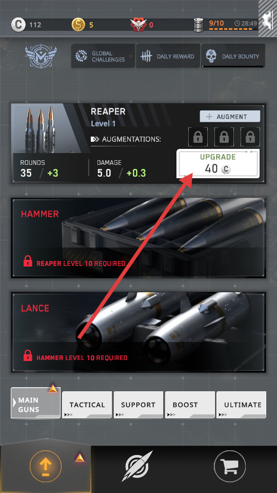 2、点击火力键切换主副武器,长按锁定多发导弹齐射。