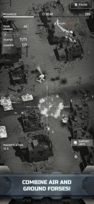 4、立体战场交互:友军坦克会随时标记高价值目标,再配合武装侦察机实施协同打击可获得一定的战术评分加成。