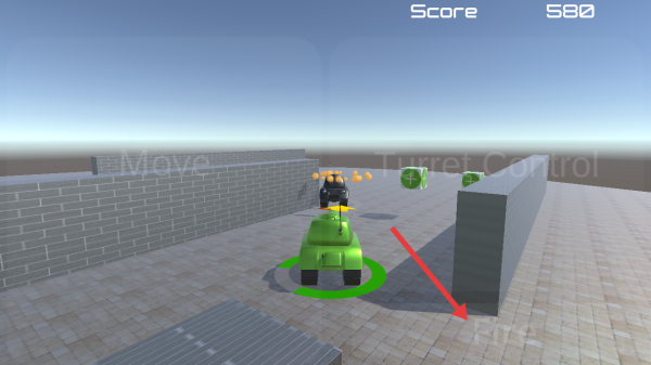 3、遇敌方载具,如黑色坦克,快速调整炮台方向,点击Fire射击摧毁,积累分数推进关卡,提升战斗表现。