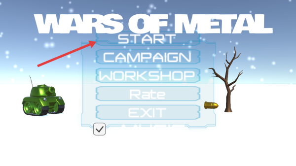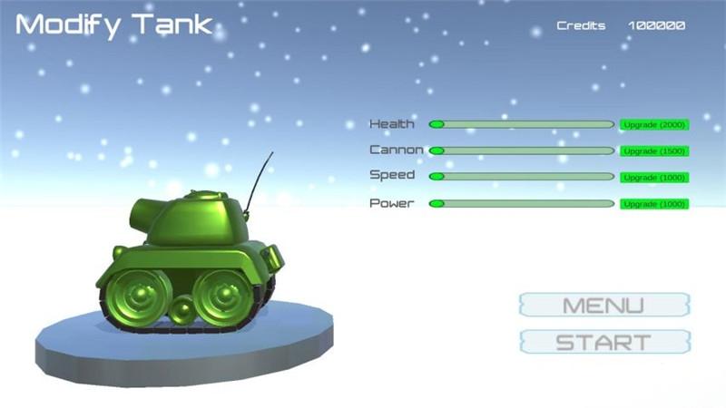 1、在WARS OF METAL主界面点击START,进入战斗场景,操控绿色坦克开启对战。