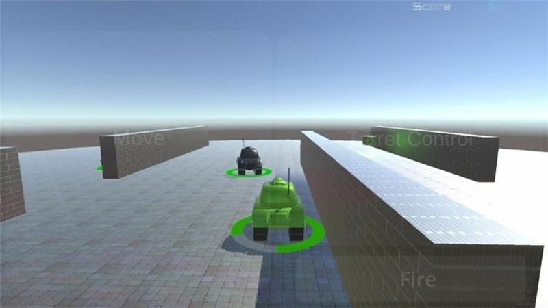 2、战斗时,驾驶坦克沿通道前行,瞄准绿色方块目标,用炮台射击,注意避开障碍物与敌方单位。