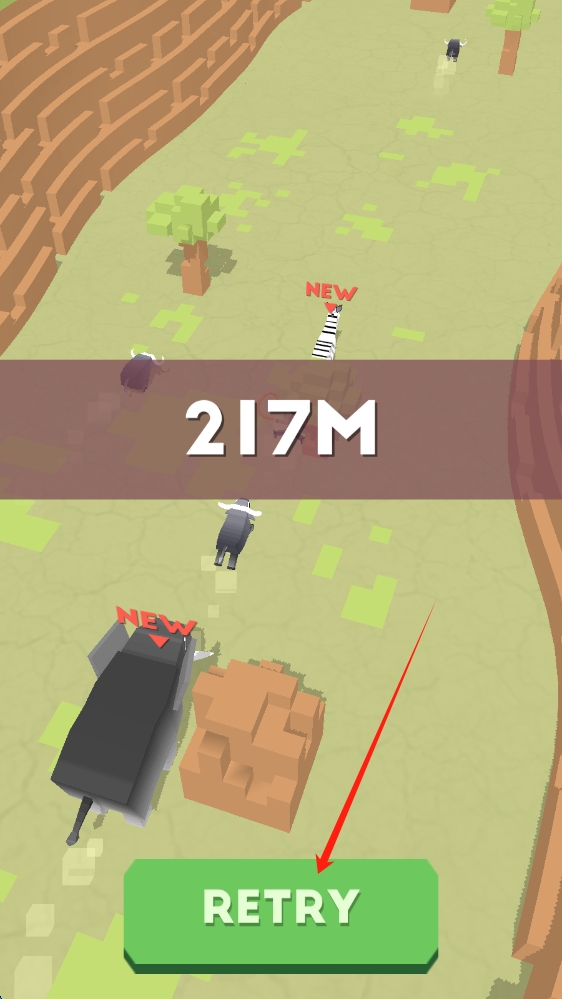 3、若失败出现217M距离提示,点击绿色RETRY按钮,重新开始挑战,尝试更远距离。
