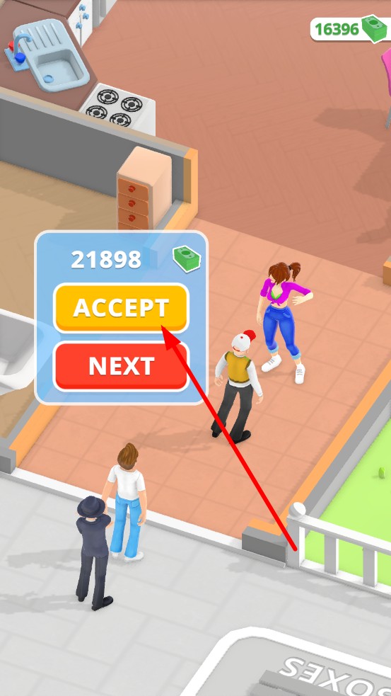 2、装修达标后触发买家看房,查看每个人的报价,优先选择更多的进行交易,点击ACCEPT锁定,获取金币与钻石,用于解锁新家具或高端稀缺房源。