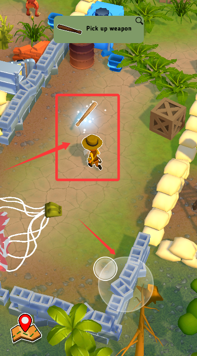 1、游戏开始后,移动角色接近地面装备,按交互键拾取武器,增强自身战力。