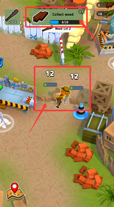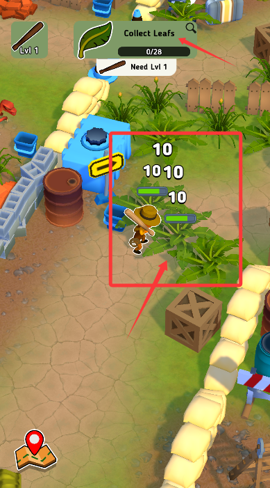 2、按照指引要求,例如需要采集植物,就前往森林区域使用工具砍伐收集。
