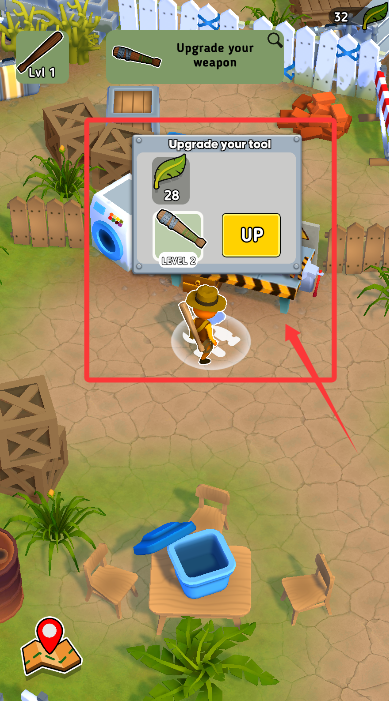 4、根据更新的任务,比如砍伐树木,前往新区域使用强化工具获取材料。