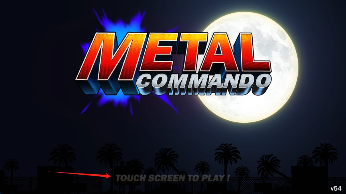 1、点击游戏启动界面TOUCH-SCREEN-TO-PLAY,进入MetalCommando游戏,点击开始游戏。