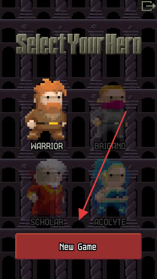 1、打开Pixel Yet Another Dungeon,点击Play进入,选喜欢角色如战士 ,点New Game开启地牢冒险。