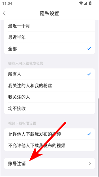 4、在隐私设置页面,点击账号注销选项,即可按照提示完成账号注销操作。