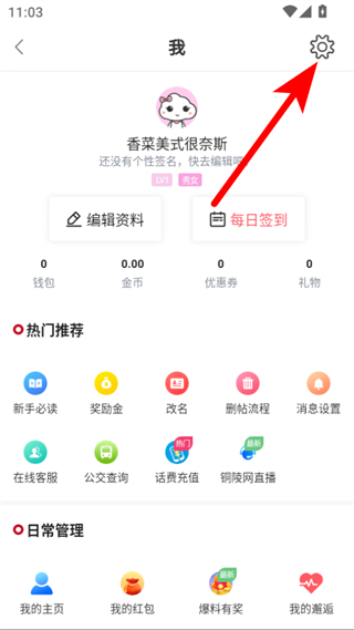 2、在个人中心页面,点击右上角设置图标,进入设置界面。