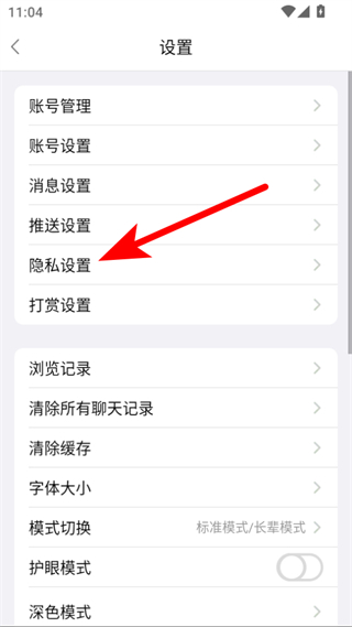 3、在设置界面中,点击隐私设置选项,进入隐私设置页面。