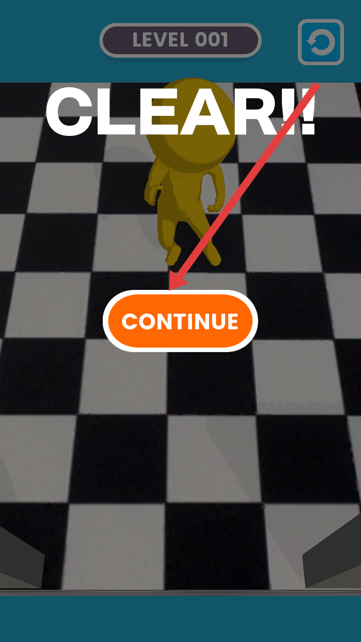 3、当屏幕显示CLEAR时,需要点击界面的橙色CONTINUE按钮,完成本关任务目标,并进入下一关。