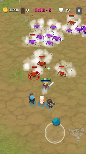 2、在路径遇到紫色蜘蛛敌人,操控英雄靠近,利用武器攻击,注意自身血量,消灭怪物推进关卡。