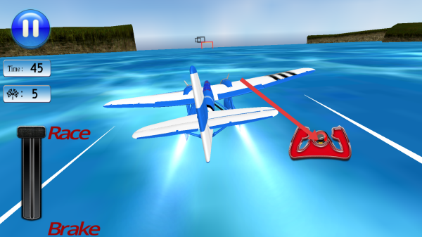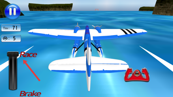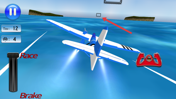 1、游戏开始,通过Race加速杆来控制飞机的前进,利用红色的操控装置调整方向,沿白色赛道线。
