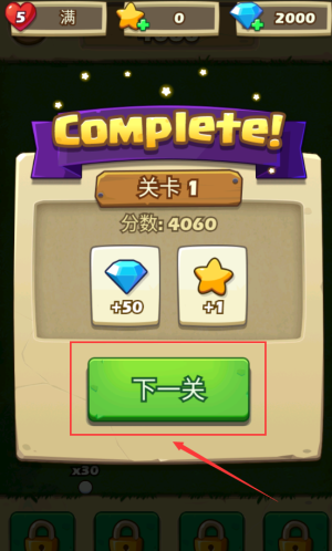 4、点击红框下一关按钮,领取4060分通关奖励。