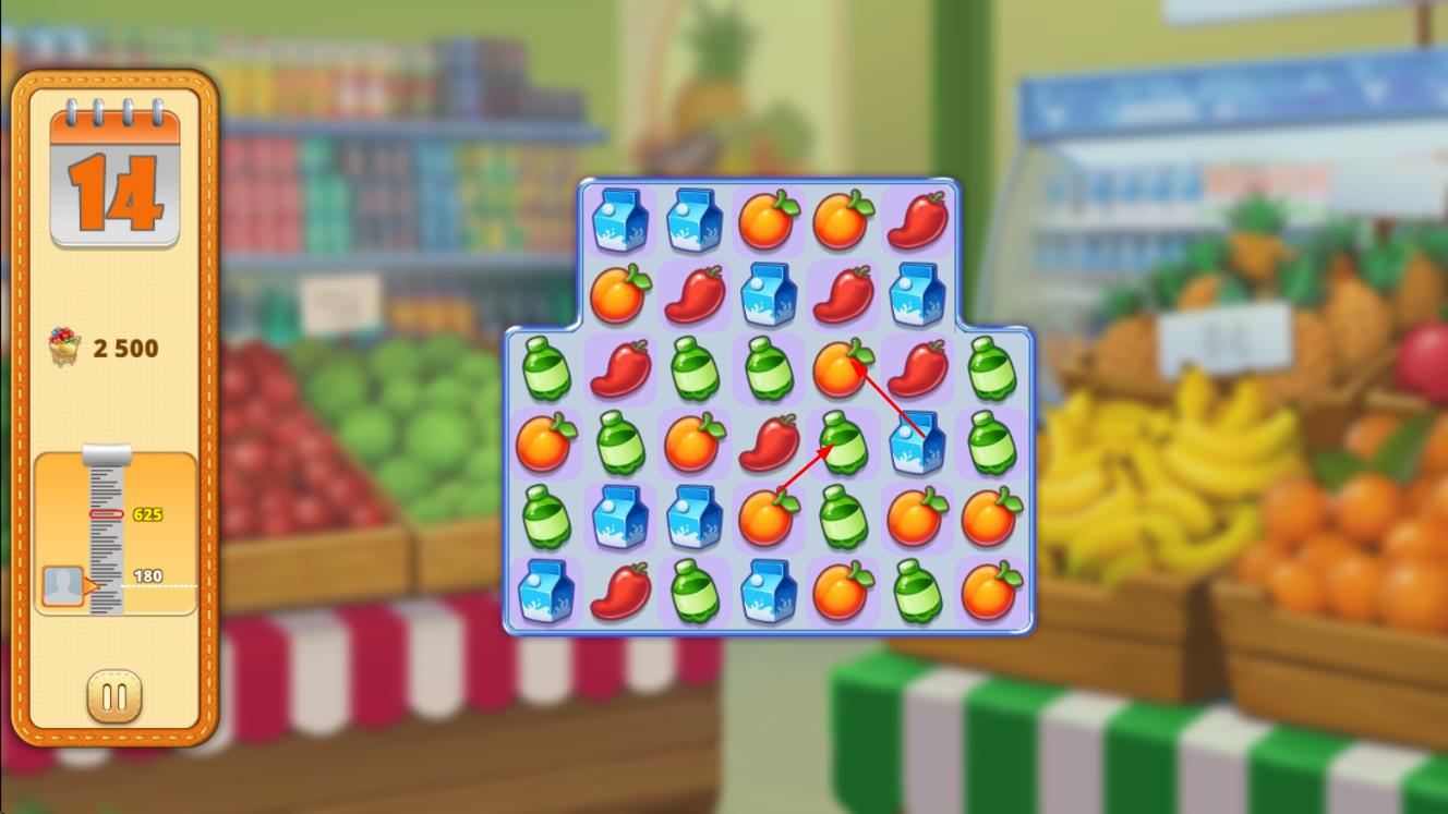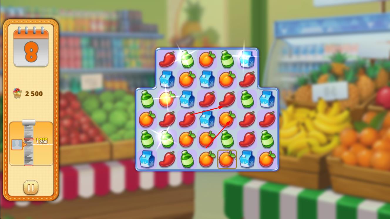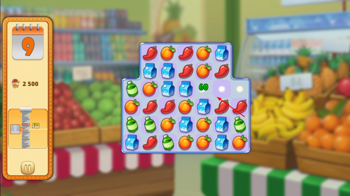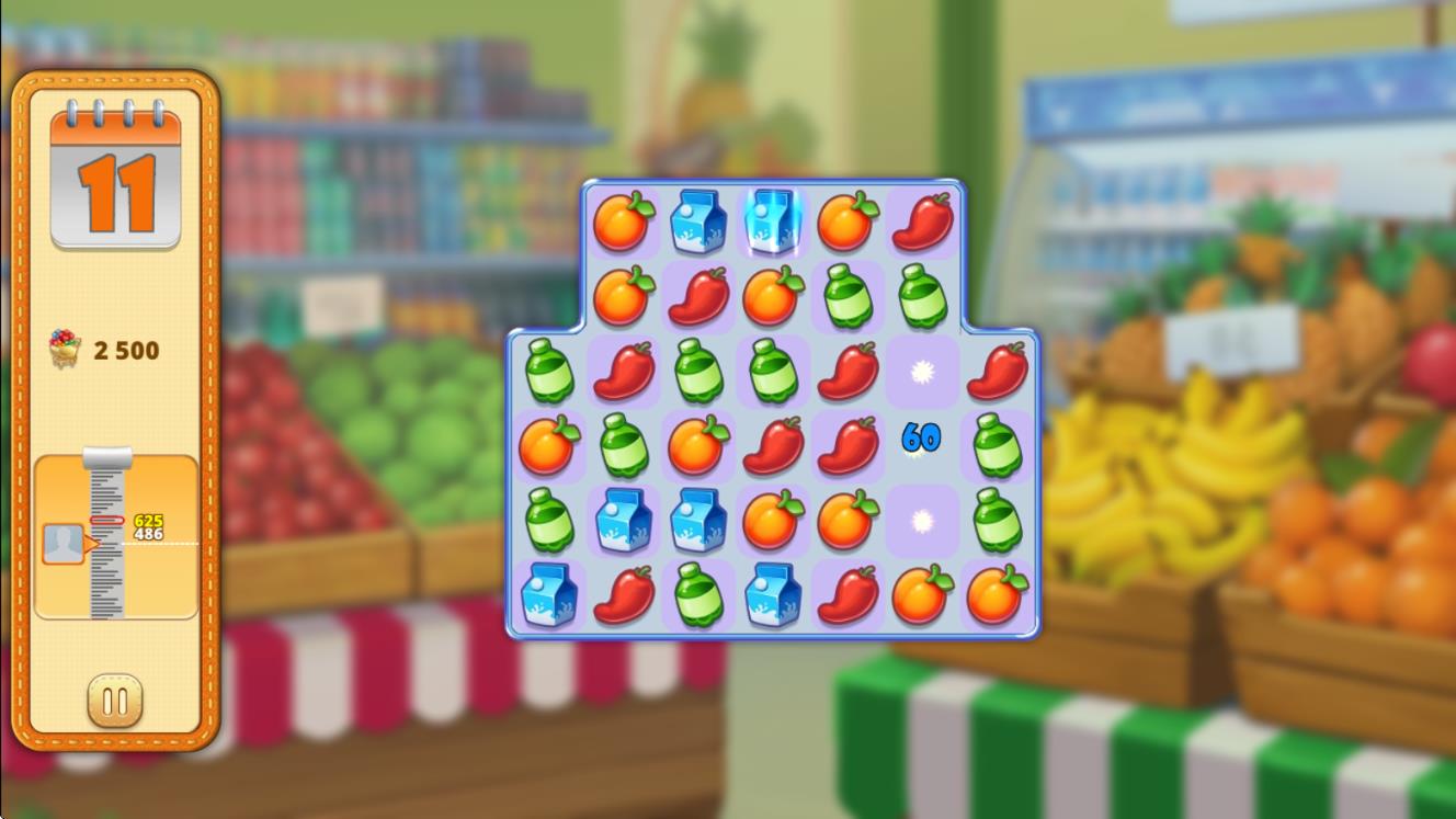 2、根据关卡目标消除指定元素或积累分数,利用特效道具快速突破难点,获取超市所需的食材与经营道具。