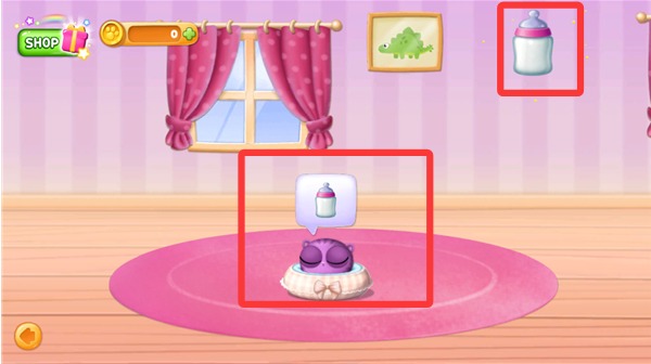 3、然后我们需要将奶瓶拖动到它面前,让它加速成长。