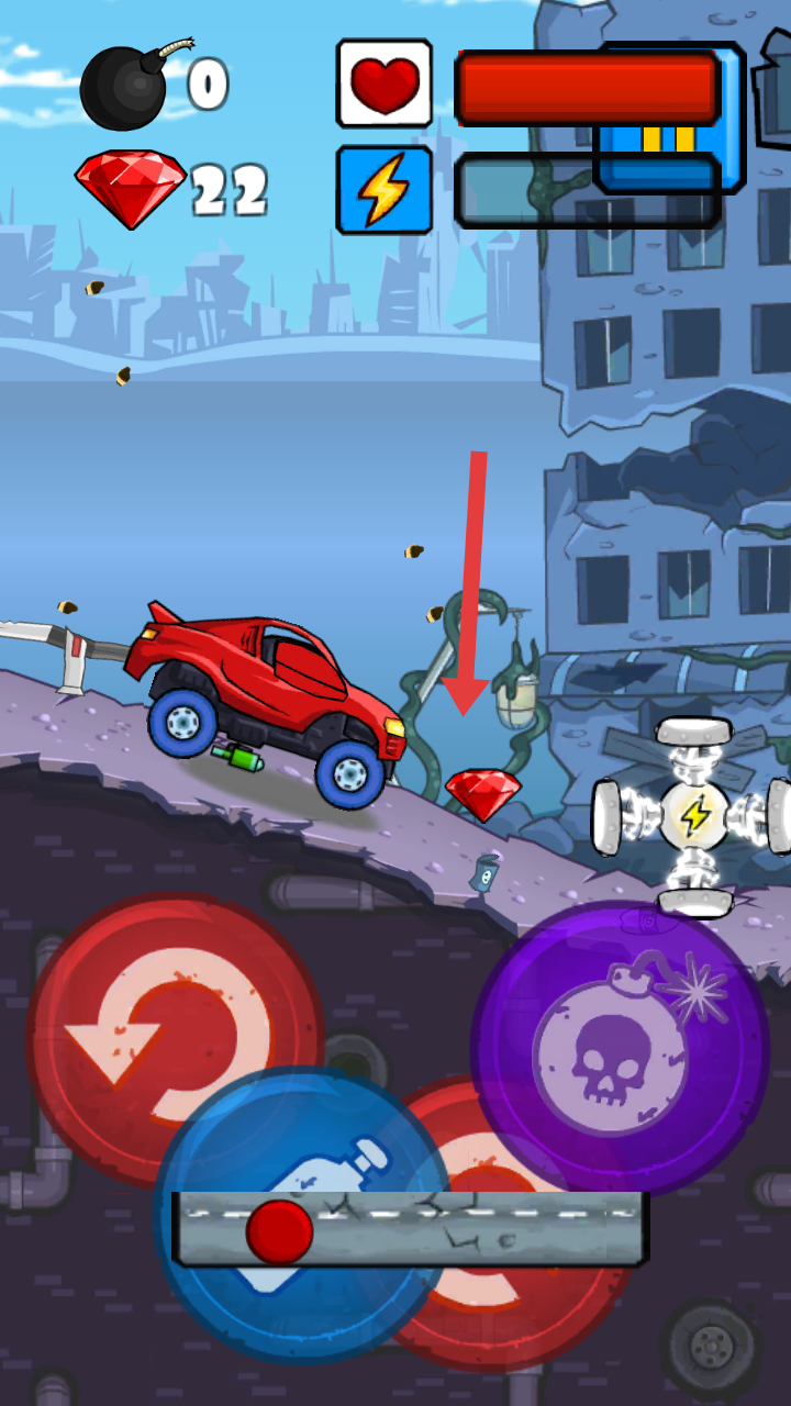 2、在驾驶过程中,需要及时的拾取路面标注的红色钻石,红色钻石可以用于后续解锁新的车辆,或者开局购买道具。