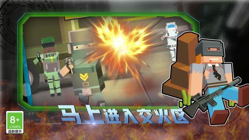 2、第一人称射击体验:以第一人称视角为核心,精准还原持枪瞄准、射击后坐力等细节,让玩家在像素世界中也能感受到真实枪战的操作手感与紧张。