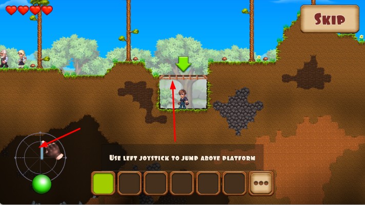 1、进入游戏,点击Play,开启采矿探索之旅,依据指引,用左侧摇杆控制角色移动、跳跃,跨越地形。