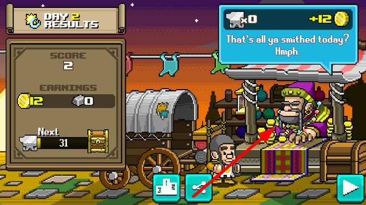 1、进入点击铁匠,出现在像素风格的铁匠铺,根据初始任务提示,点击锻造台开始制作首个基础道具。