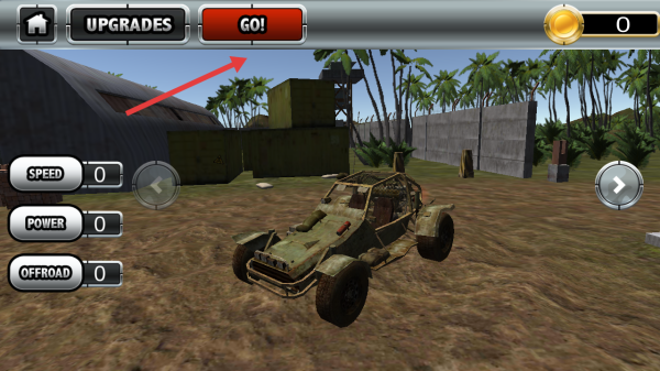 2、于车辆准备页,点击上方红色GO按钮,驾驶越野车正式开启该关卡的地形挑战。