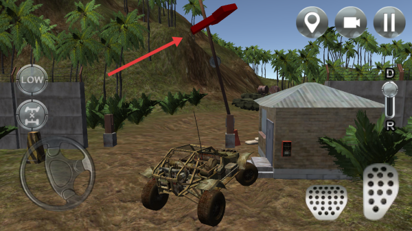 3、操控越野车行驶,沿路线翻越地形,朝着高处红色标识物进发,灵活用操作键过障碍。