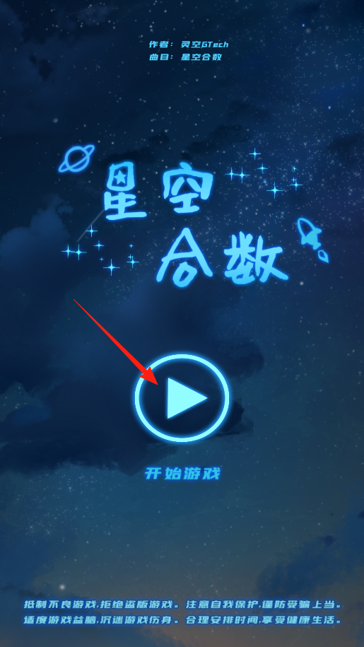 1、打开游戏,点中间蓝色播放按钮,开始游戏,这按钮就像开启宇宙数学之旅的大门,点它进入数字合成的关卡,准备挑战。