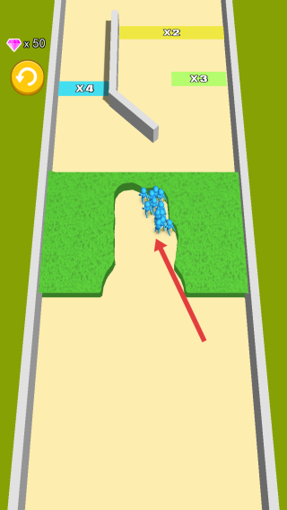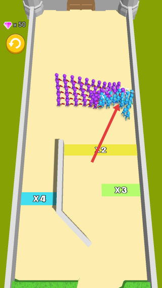 2、小兵行进时,会经过标有倍数如×2、×3的区域,自动增殖,注意引导避开障碍,走通路径。