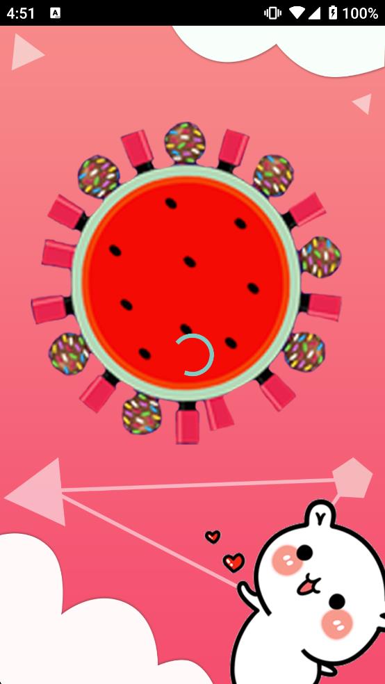 3、视觉元素明快:西瓜的鲜艳色彩与口红的多样样式形成鲜明对比,旋转过程中的动态效果流畅,搭配清脆的插入音效,营造出轻松又带点小刺激的游戏氛围。