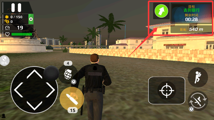 4、参照界面右上方导航标记,向目的地前进,逐步完成挑战。