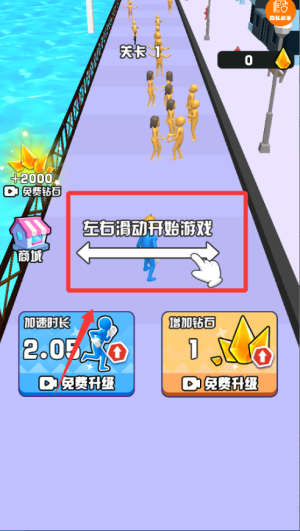 1、进入游戏后先熟悉操作,用手指滑动控制小人跳跃或下滑,注意观察前方障碍,提前预判动作避免撞上。