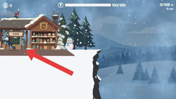 1、画面呈现了游戏初始的页面,场地背景为雪地,玩家需要在补给站内进行整装待发,点击屏幕即可开启游玩。