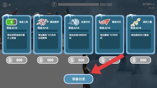 3、到达终点时会显示获得奖励以及能力,了解后可以点击准备出发继续进行下一关的游玩。
