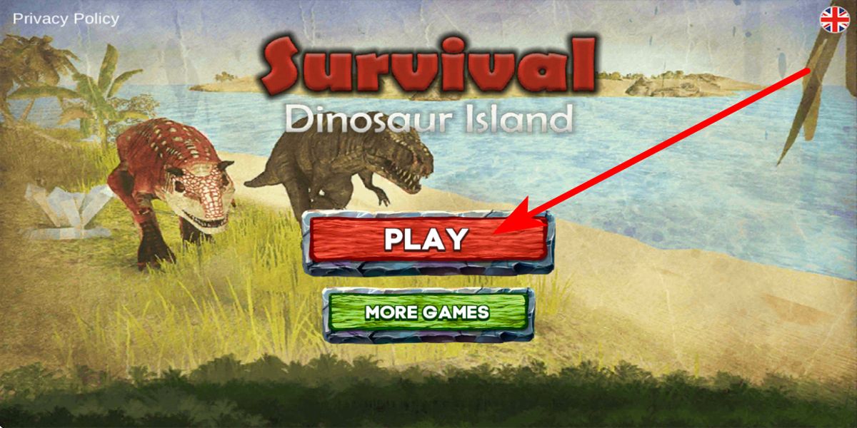 1、进入主界面后,找到醒目的红色PLAY按钮并点击,便能正式开启恐龙岛生存冒险,踏入满是恐龙与神秘未知的岛屿世界,开启求生之旅。