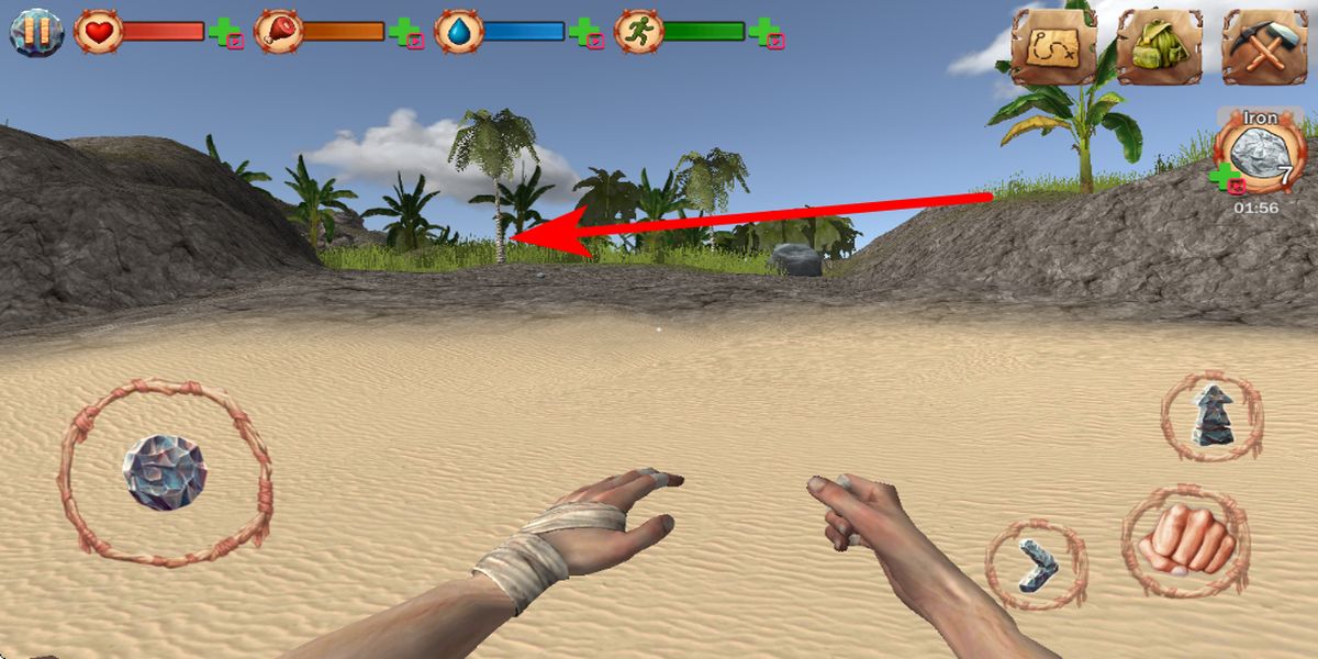 1、资源收集获取:需收集岩石原木等各种资源,收集过程中屏幕底部的指示器会显示获取数量,通过不断收集资源,为后续制作工具和建造住所积累必要的材料。