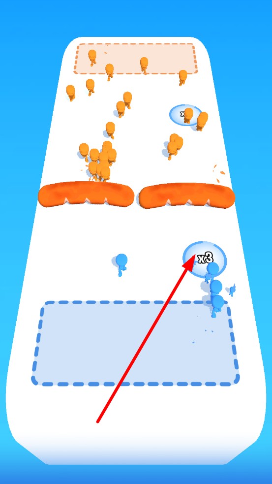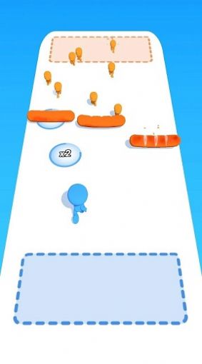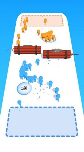1、极简对战机制:单指滑动即可指挥团队,战场以蓝白为主色调,橙色敌人、面包障碍布局随机,看似规则简单,实则需计算人数差、规划绕路或强攻策略。