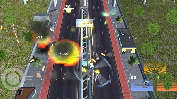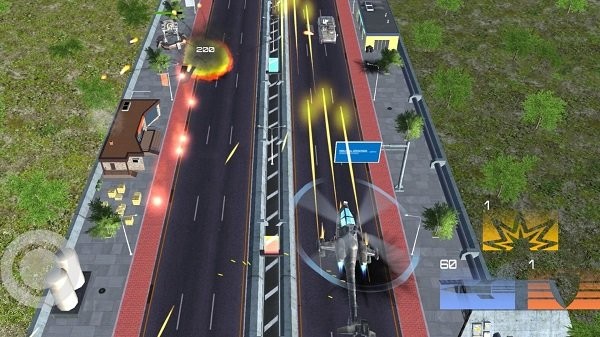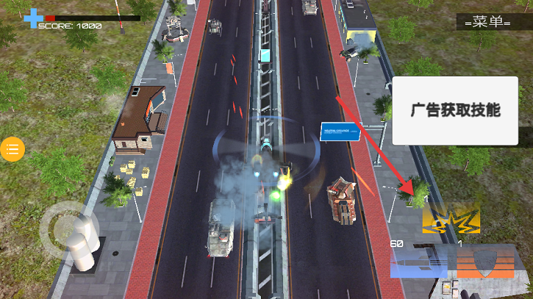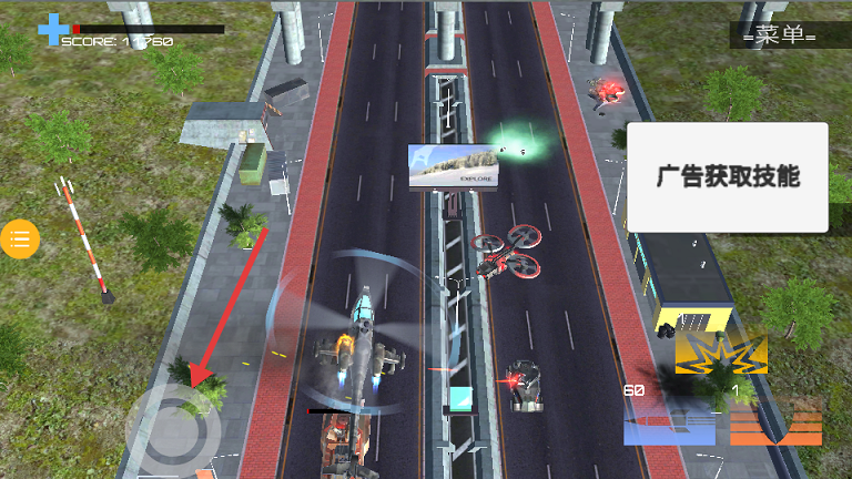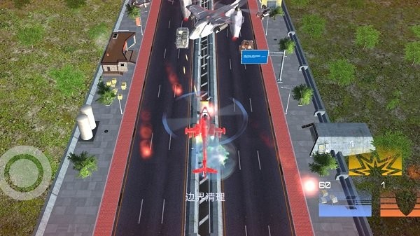 1、左手虚拟摇杆控制飞行方向,右手按钮发射机枪与特殊武器。