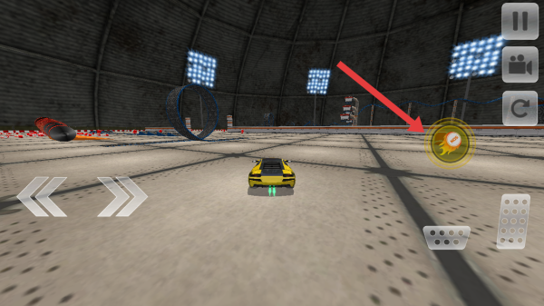 2、赛道行驶中,遇环形障碍、加速带等布局,把握时机点击右侧NOS按钮,借助氮气进行加速。