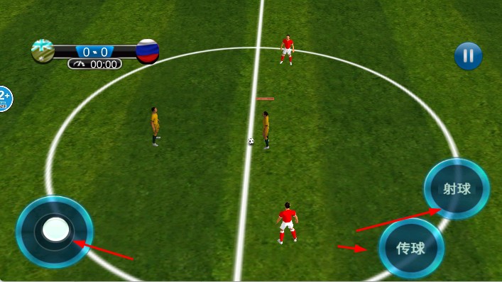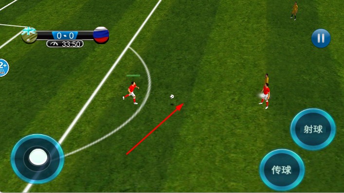 3、进入比赛,用虚拟摇杆控制球员移动,点击传球,射球按键,指挥队伍进攻、防守,带领队伍征战。