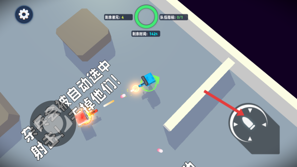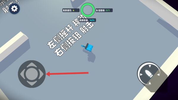 1、进入游戏,用左侧摇杆控制角色移动方向,点击右侧按钮进行射击,这是基础操作,需熟练掌握。