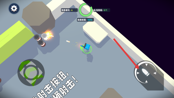 3、遇到可破坏场景物件,长按射击按钮进行连射,借助火力,同时注意躲避爆炸,保证生存推进。