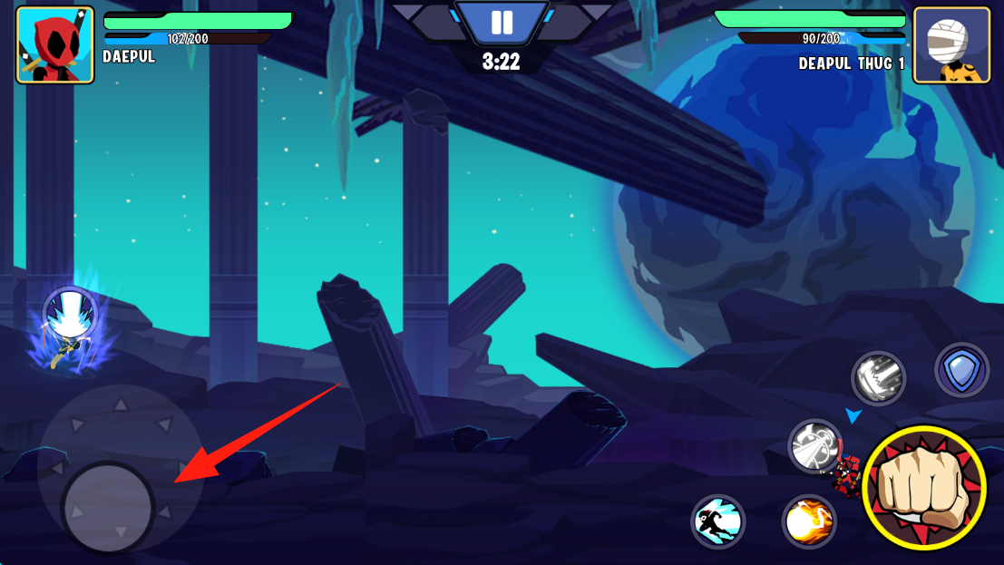 3、战斗中通过左侧虚拟摇杆控制角色移动,搭配右侧技能按钮,灵活对抗敌人,拨动轮盘移动。