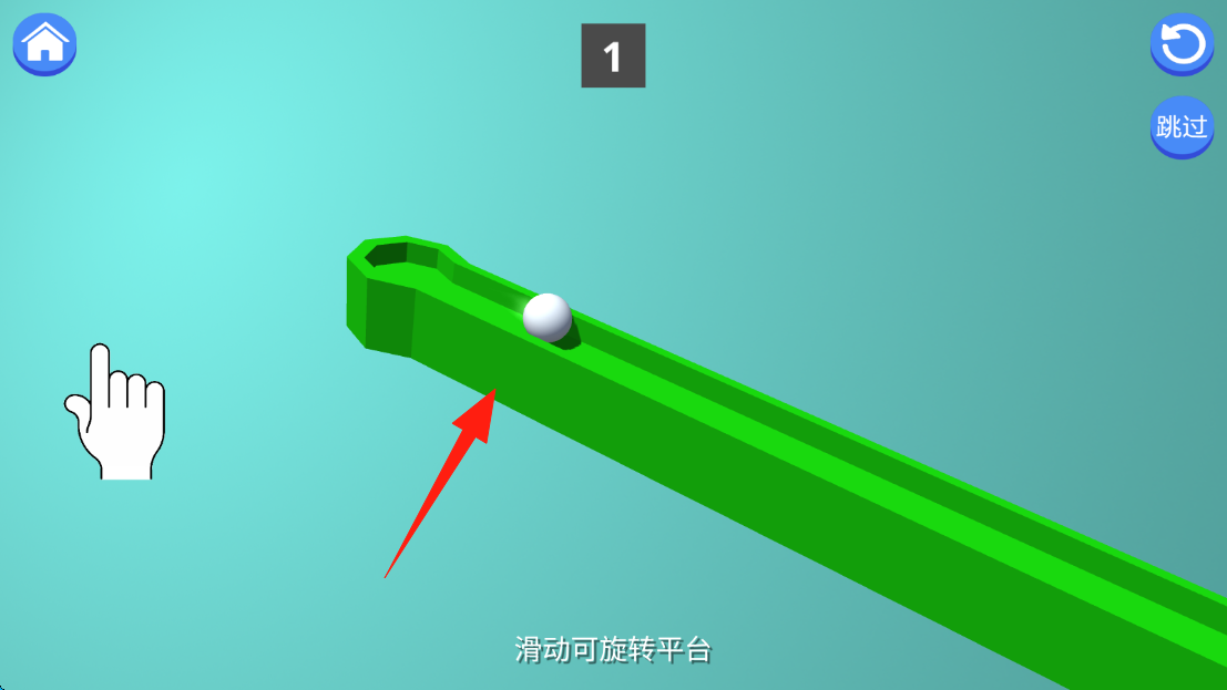 3、游戏中滑动屏幕旋转绿色平台,控制白色小球移动,保持平衡,让球抵达终点,滑动移动小球。