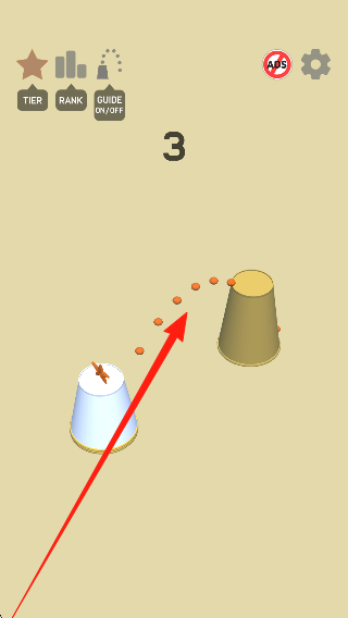 2、挑战跳跃到杯子上,选择合适的堆叠难度,专注于提升精准度,将杯子逐步堆叠至目标高度,推进进度。