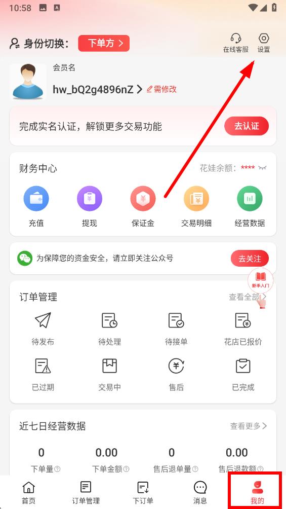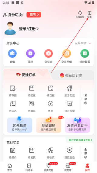 1、打开花娃app点击底部导航栏最右侧我的选项,进入个人页面点击页面右上角设置图标。