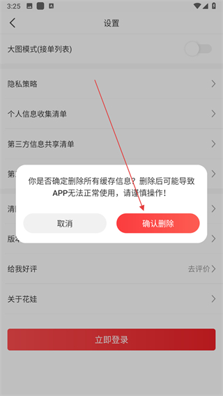 4、在提示框中点击确认删除按钮,即可完成缓存清理。